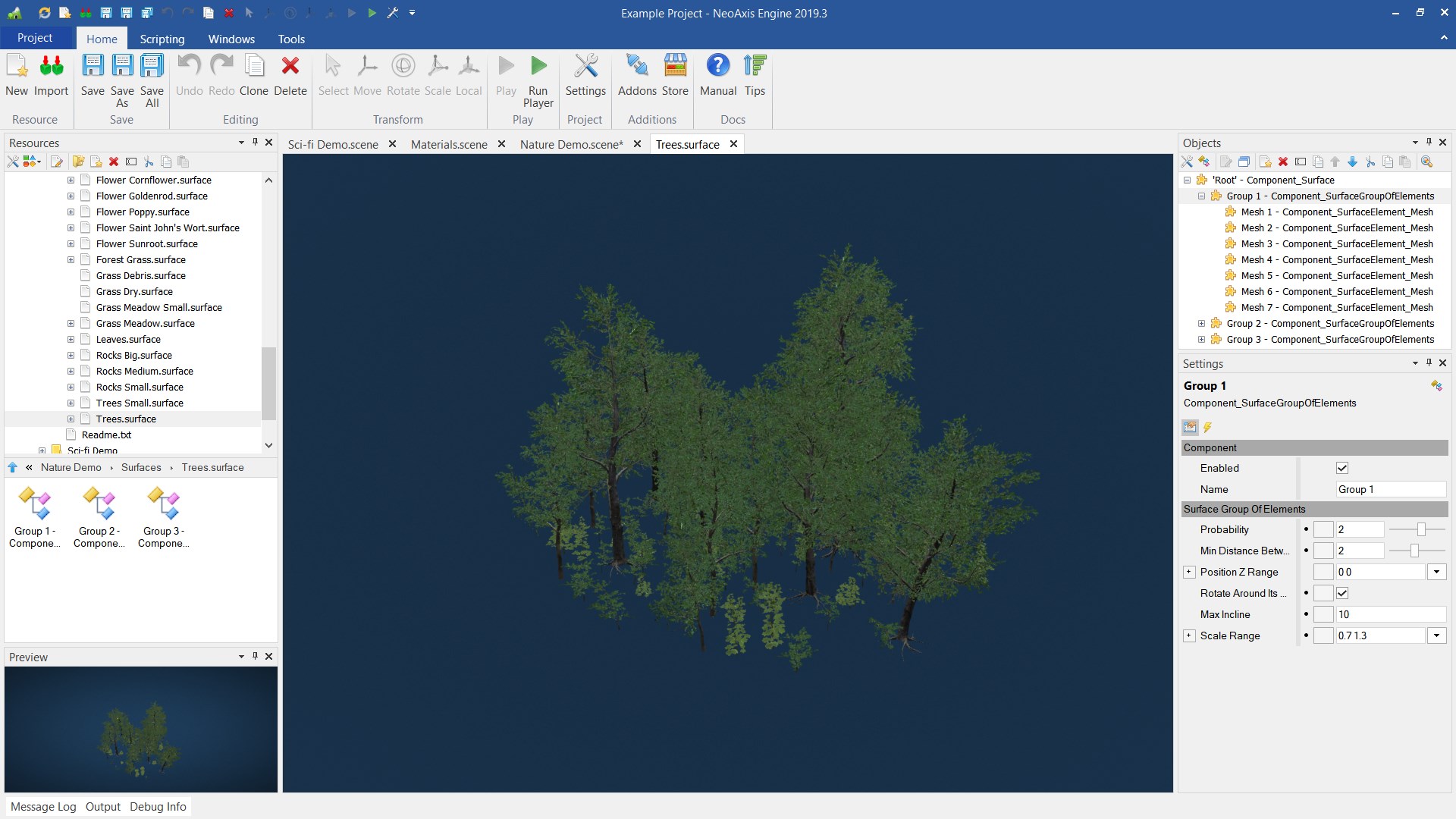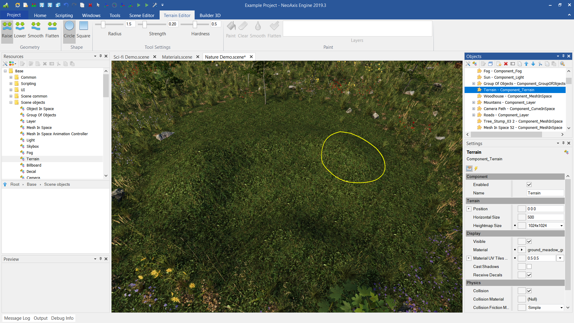 NeoAxis引擎 2019.3 现在有 景观支持 并为他们而设一个编辑。 有可能进口其他工具所制作的现成高地图.