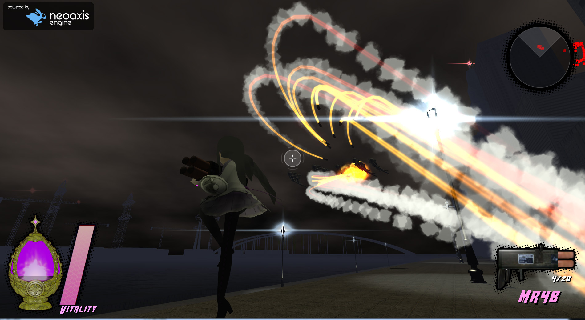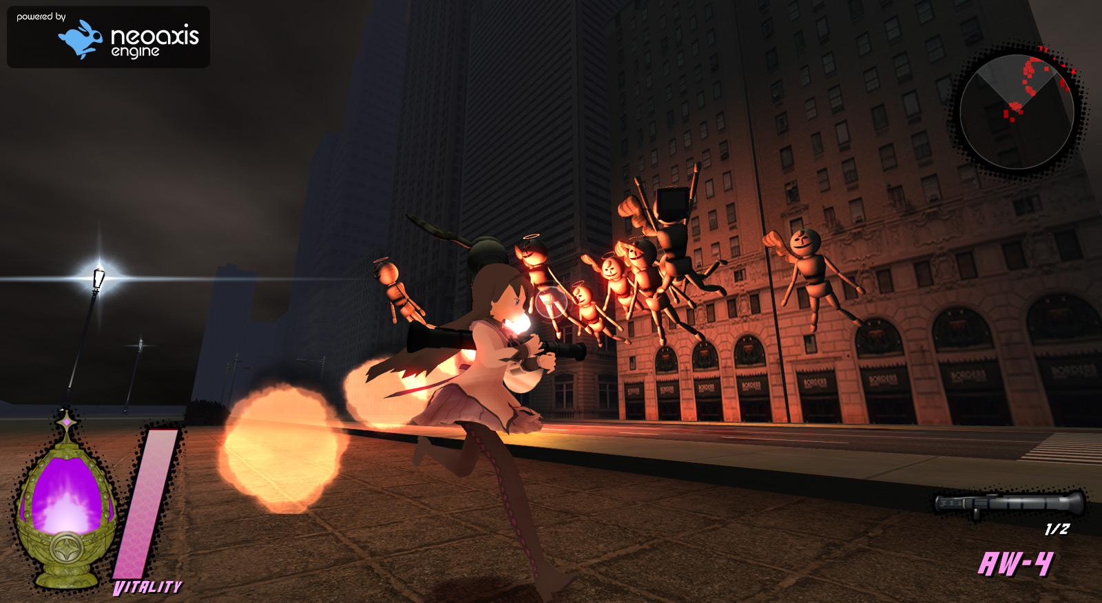 这是一位第三人称射手,其中魔法少女(被日语称为"Mahou shoujo")正与邪恶的"瓦尔普吉斯之夜"魔女作对. 凭借通过魔法来阻止时间的能力,"马侯肖乔"用她的力量来拯救她唯一的朋友,她注定会被"瓦尔普吉斯之夜"女巫所杀.